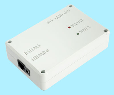 Urządzenie stanowi bardzo łatwy do zastosowania gotowy interfejs Bluetooth przystosowany do bezprzewodowego podłaczenia urządzeń w standardzie 1-Wire. Otrzymujemy w ten sposób gotowy rozproszony system kontrolno-pomiarowy obsługujący wszystkie dostępne elementy sieci 1-Wire firmy MAXIM-DALLAS. Urządzenie posiada układ zawierający unikalny numer seryjny (DS2401), wykorzystywany zazwyczaj dla celów ochrony własnego oprogramowania - urządzenie może stanowić w tym przypadku również klucz sprzętowy oprogramowania. UWAGA: Antenę Bluetooth i zasilacz należy dokupić osobno (dostępna w naszej ofercie). Urządzenie jest już skonfigurowane jako SLAVE z odpowiednimi parametrami transmisyjnymi i automatycznie zostaje wykryte przez komputer PC (MASTER) w sieci Bluetooth. Przy opcjonalnym zakupie interfejsu Bluetooth na USB typu MP-BT-USB lub na RS232 typu MP-BT-RS232, zestaw na życzenie może zostać tak skonfigurowany, że po podłączeniu obu urządzeń następuje ich automatyczne połączenie w sieci Bluetooth i obsługa systemu jest identyczna jak poprzez port szeregowy RS232 (w przypadku interfejsu na USB w komputerze pojawia się wirtualny port szeregowy dostępny dla każdej aplikacji). |